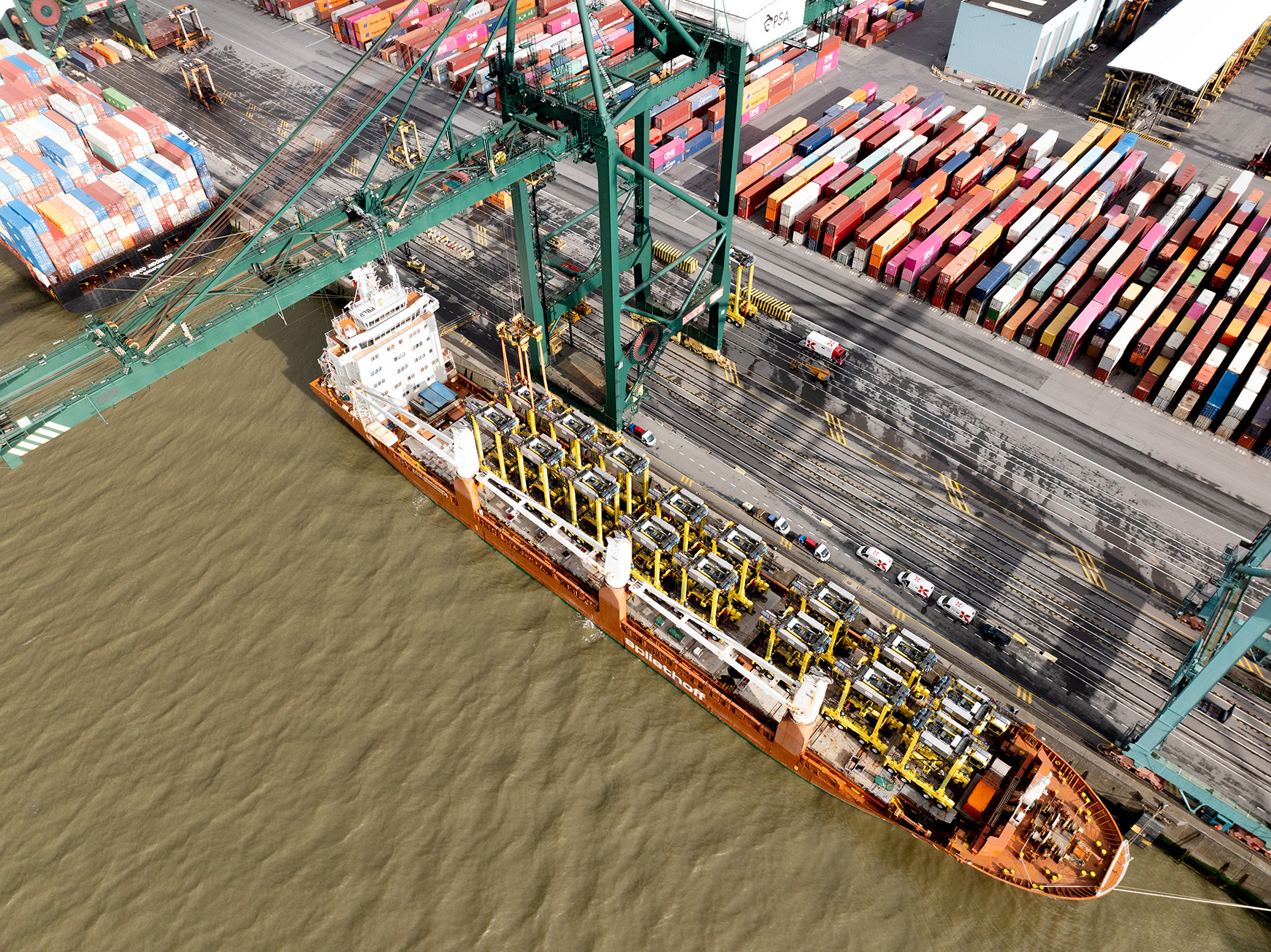 This delivery by ship underscores our collaboration with PSA Antwerp. Our hybrid straddle carriers are designed for intensive container operations and help terminal operators reduce their environmental impact within existing operational constraints.